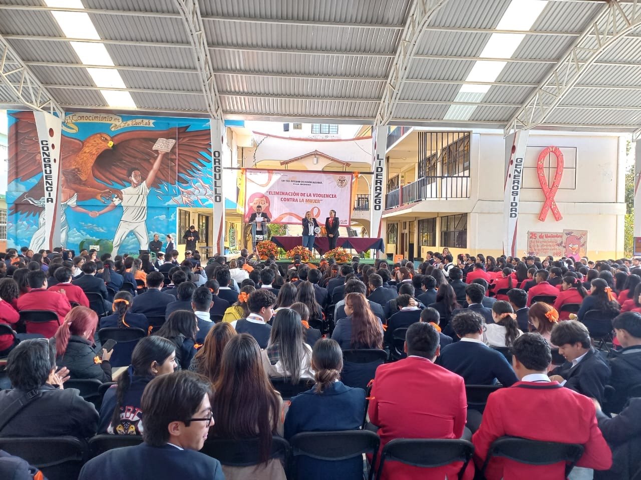 También estuvieron presentes La Directora Dania Sarai Sotelo Medina y el Subdirector Dr Irving, Directivos, docentes y alumnados del CBT Ing. Estaban Calderón Alcaraz participan donde se hace mención la importancia para acabar con la violencia de género.