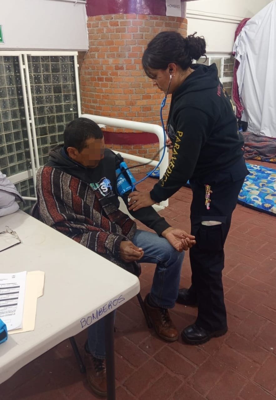 Por instrucción del Presidente Municipal, la Coordinación de Protección Civil y Bomberos mantiene acciones permanentes, con recorridos en distintas zonas para identificar a personas en condición vulnerable e invitarlas a resguardarse en un espacio cálido y seguro, donde se les proporciona colchoneta, cobija, alimento y bebida caliente.
